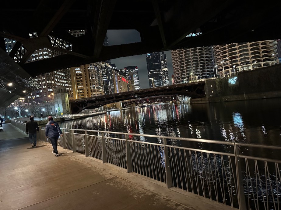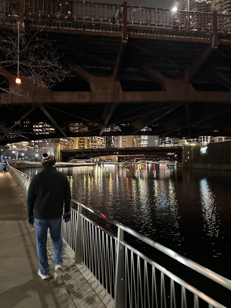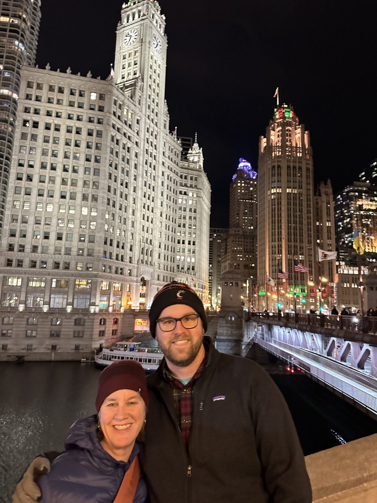 We went on a quick weekend trip to Chicago to go to a concert, celebrate my birthday and to visit with friends and family. Courtney and I picked up Jack at his place at 12:30 and hit the road for an easy car ride to CHI arriving around 5:00PM CST. We stayed at Soupy’s place in the south loop which is wonderful – even a free place to park. We visited with Soupy for a bit before he left to go to the Loyola BB game with friends. We then hit the pavement and walked for about an hour and a half down to Michigan Ave, then walked along the river walk and then cut back across the loop back to the south loop. We had an excellent dinner at Sofi on Printer’s Row and then stopped for a glass of wine at Printers Row Wine Shop and then walked black and quickly fell asleep.