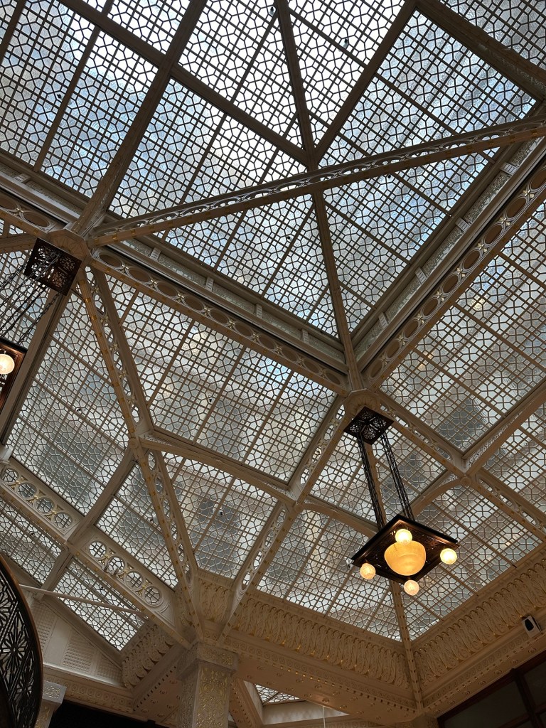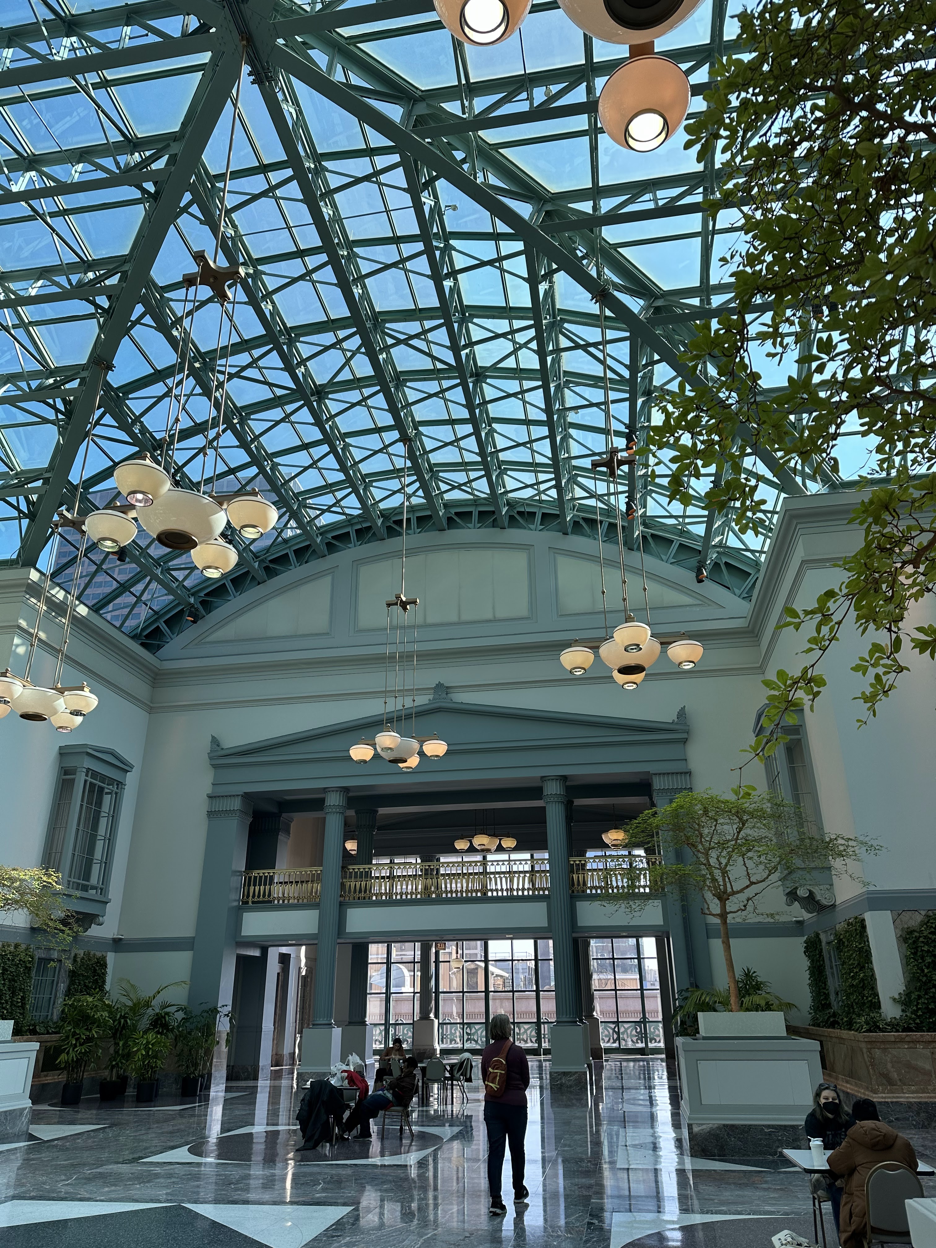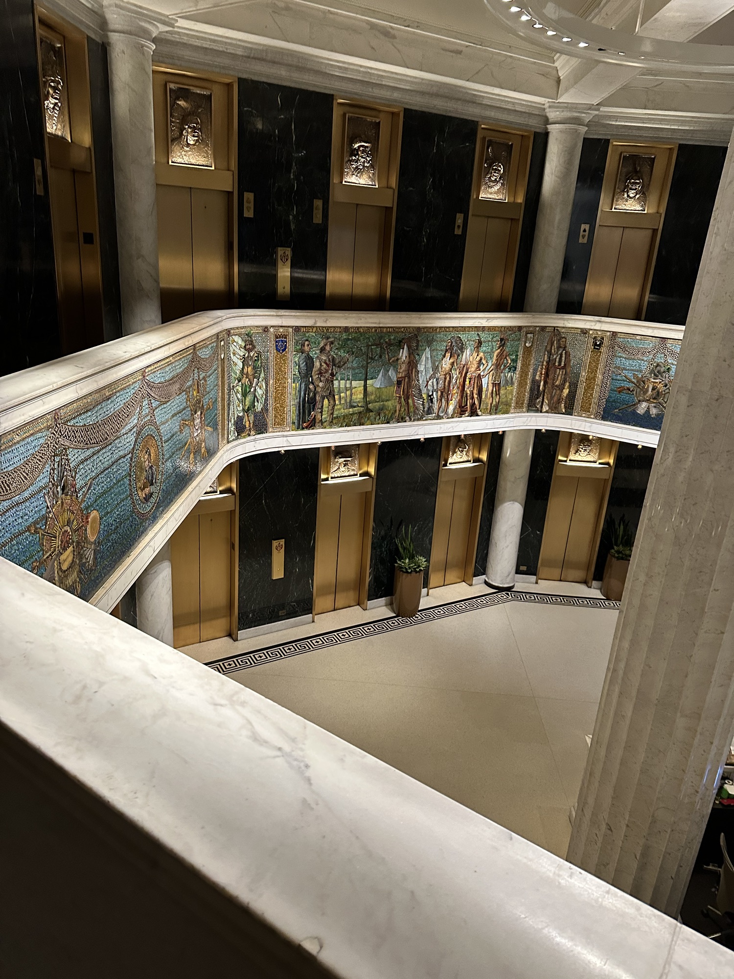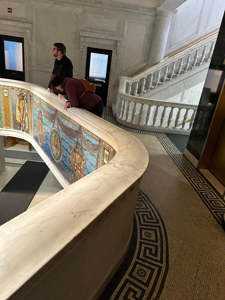 Admiring the spectacular Tiffany mosaics, tile-work and marble in the Marquette building.