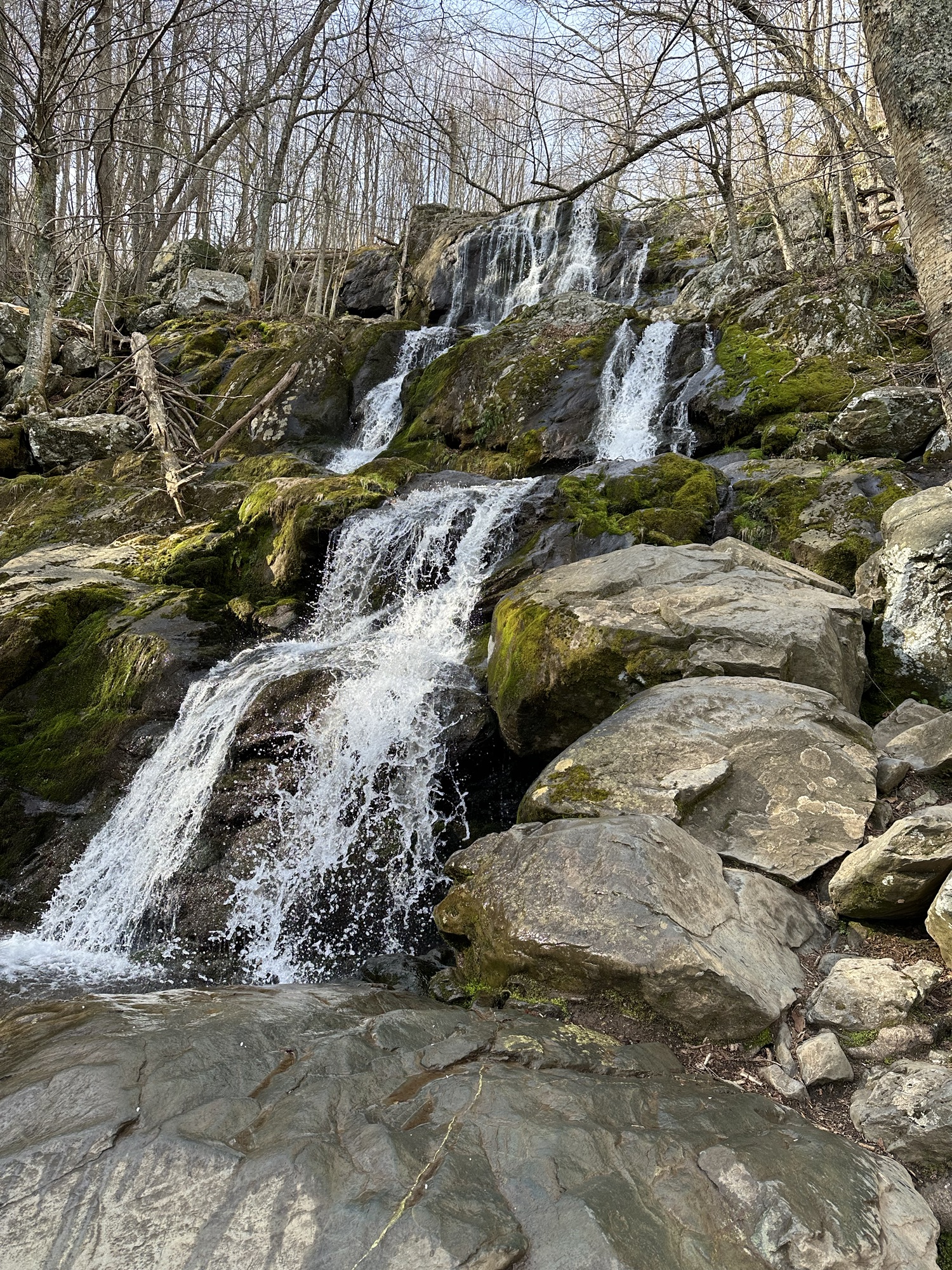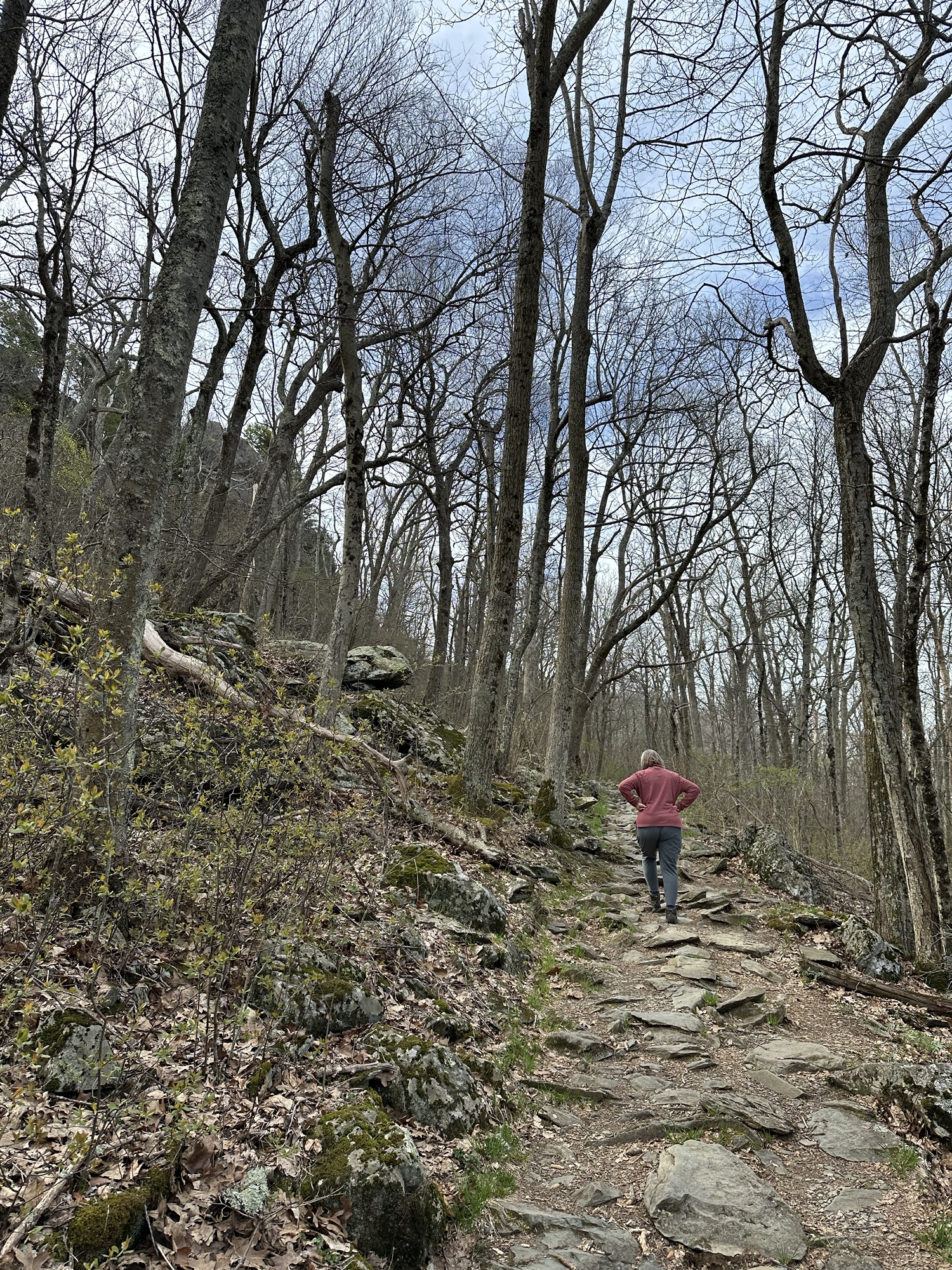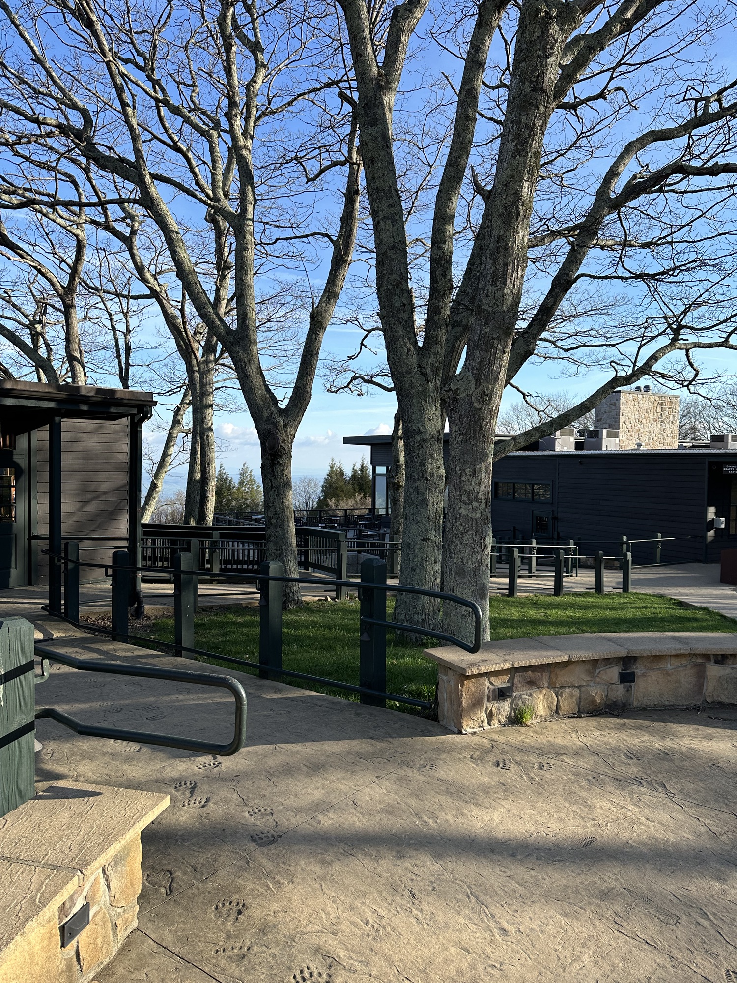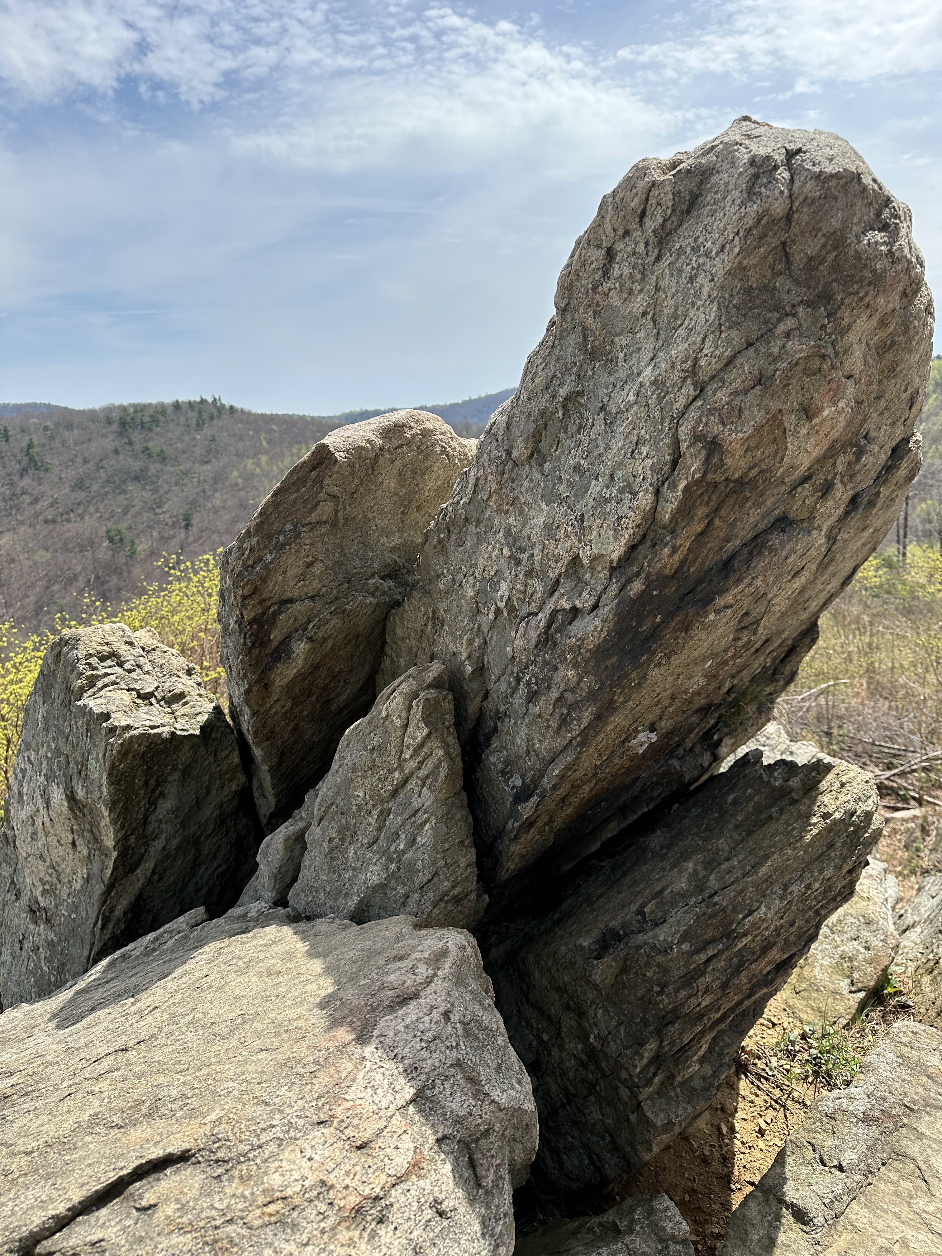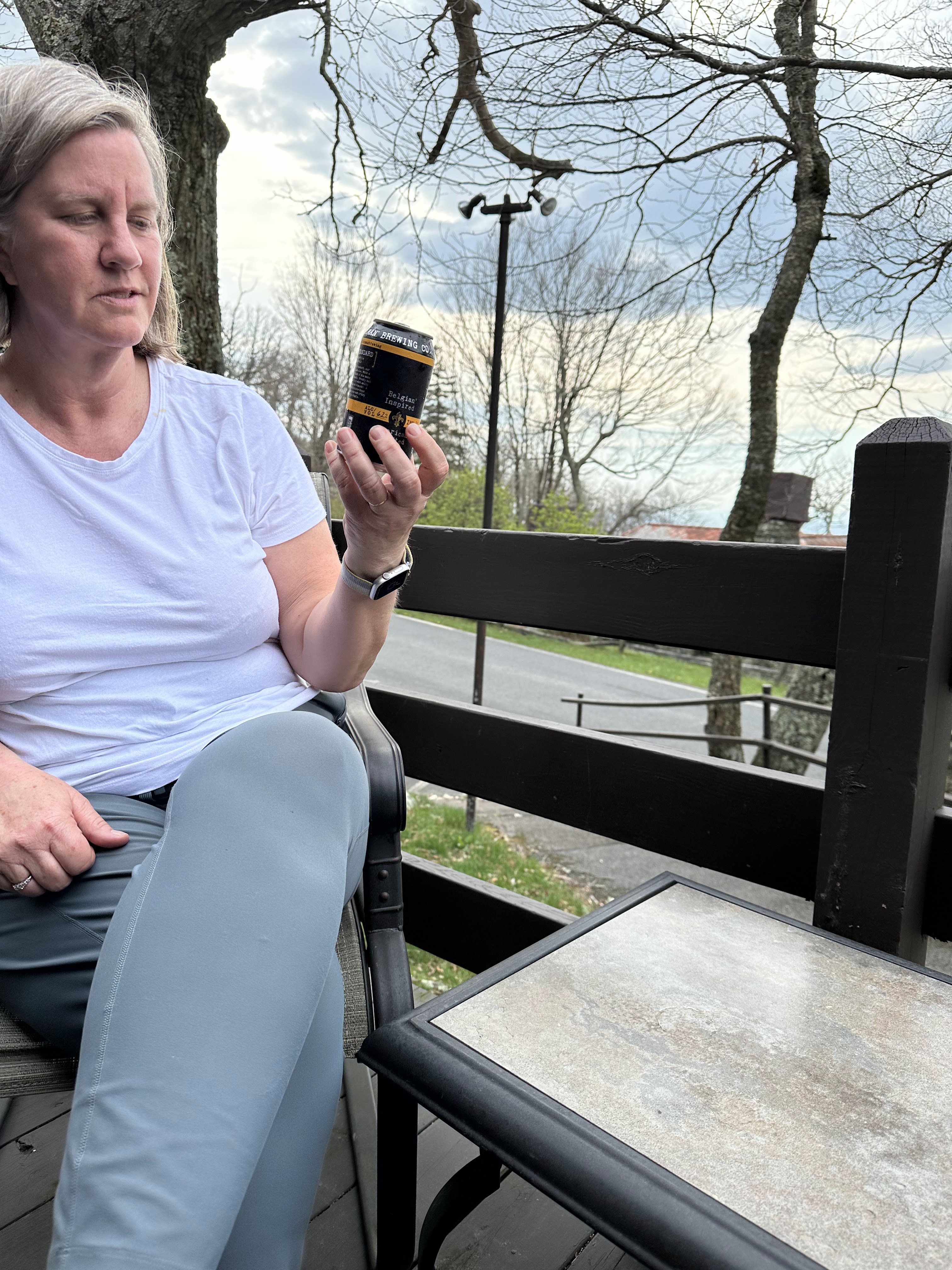 We packed out things up in the morning and went up to the lodge again for breakfast. We split an order of blackberry french toast which was very good. We hit the park again on a beautiful spring morning. We first hiked Dark Hollow Falls trail which was a beautiful trail going down into the valley following a small stream and ending in a nice set of waterfalls. We were worried the hike back up would be rough but we made it no problem. We then hiked the Bearfence Mountain trail which was just the opposite – hiking up up up to a rocky overlook. This was about the only time we saw other people on any of our hikes. It was blessedly almost empty on this off season week day. We continued driving through the park and arrived at Blue Mountain Brewery around 1:00. The brewery was a great place with amazing scenery and it was suddenly 80 degrees and sunny once we were down from the mountains. We had some good beers and a good lunch and then headed back on the road to Roanoke. It took us about two hours to drive to Emily and Dan’s house. Once Dan was done working we headed out to downtown Roanoke and had cocktails and apps at the Liberty Trust – a cool swanky hotel converted from an old bank. We then walked a few blocks to Sidecar – a belgian restaurant where we had an excellent dinner.