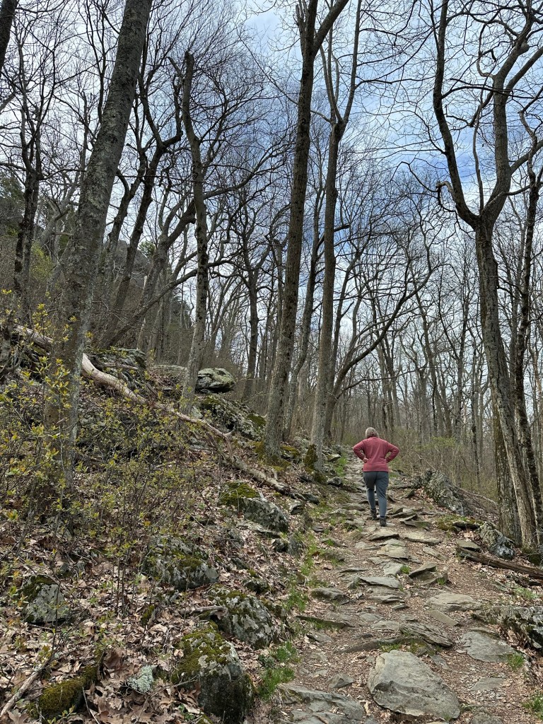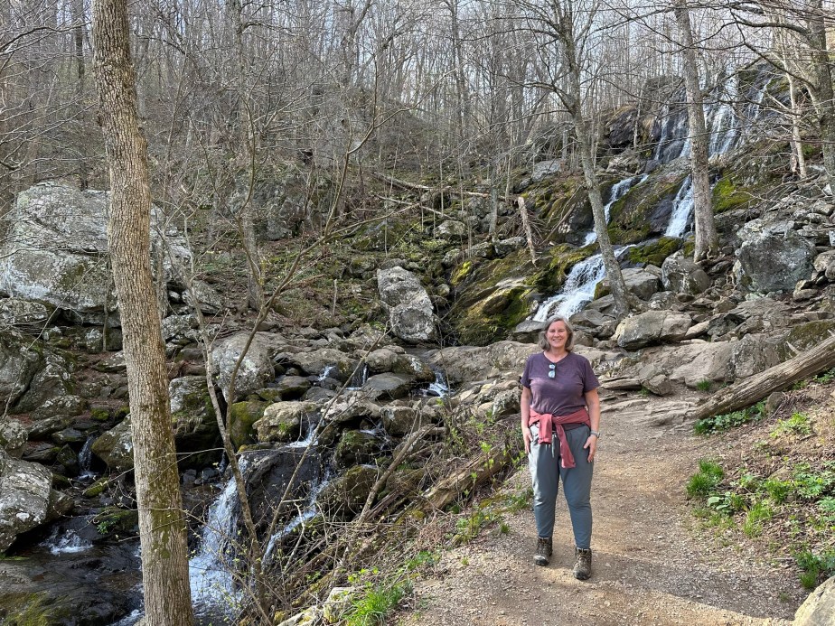 Courtney and I hit the road around 6:00AM heading to Shenandoah National Park. We arrived after an uneventful six and half hour drive and headed up the mountains on Skyline Drive. The park is centered on Skyline Drive that winds through the mountains for 105 miles and connects with the Blue Ridge Parkway on the south end. We stopped for a picnic lunch that we brought with us at Elkwallow picnic area. We kept heading up the mountains and stopped at several of the numerous outlooks built into the road to admire the scenery. We hiked the Limberlost trail which was super easy and then headed to the Skyland area where we were staying for the night. We arrived at 3:00PM and were able to check in to our little cabin. After unpacking and sitting on the porch for a bit we hiked the Stony Man trail which was just around the corner. The hike was not that long – just about two miles – but was an uphill trail to the look out of stony man mountain. A great view. Headed back to our cabin, had a drink or two and then walked up to the lodge where we had a surprisingly good dinner. We each had salads and Courtney had a bison pasta bolognese and I had a bowl of Brunswick stew. Blackberry ice cream pie topped with meringue for dessert won the prize though.