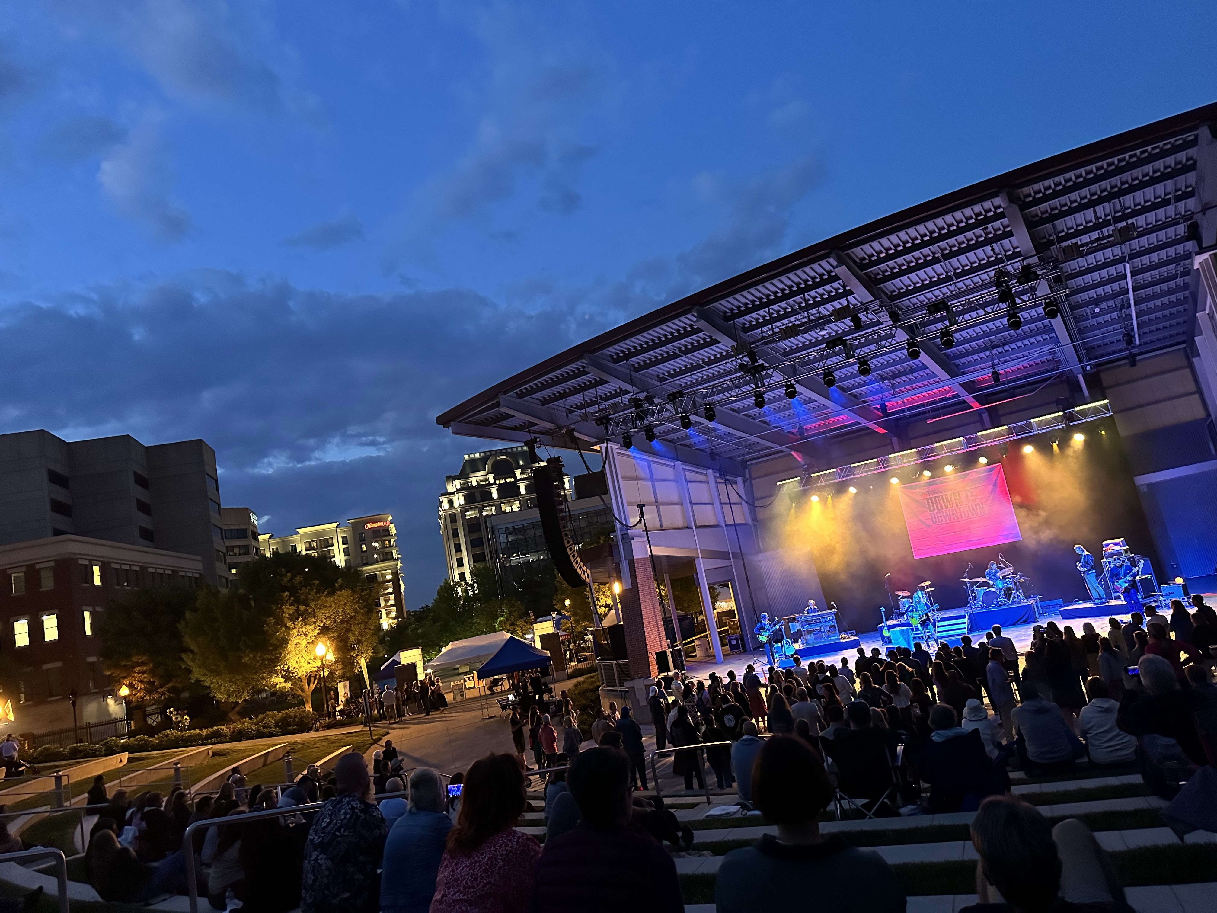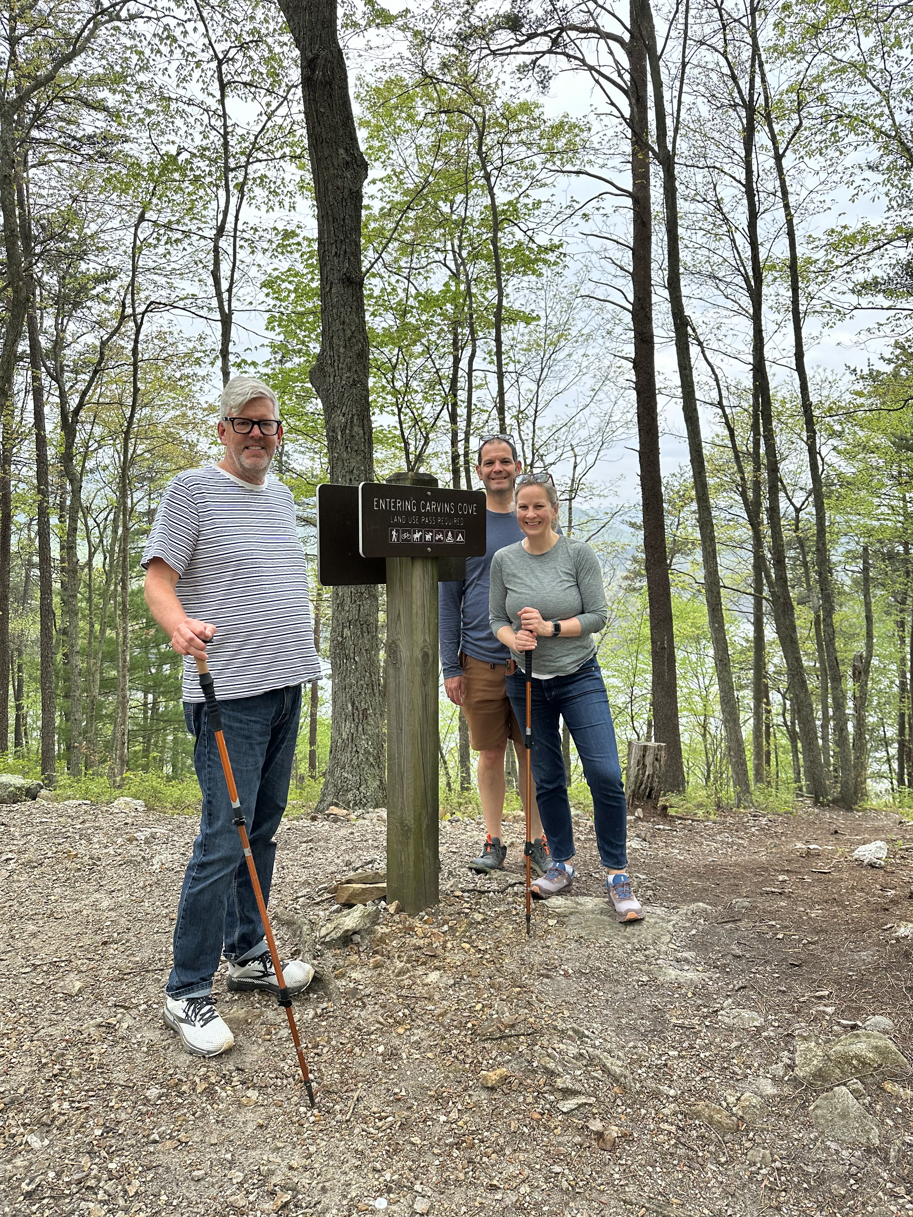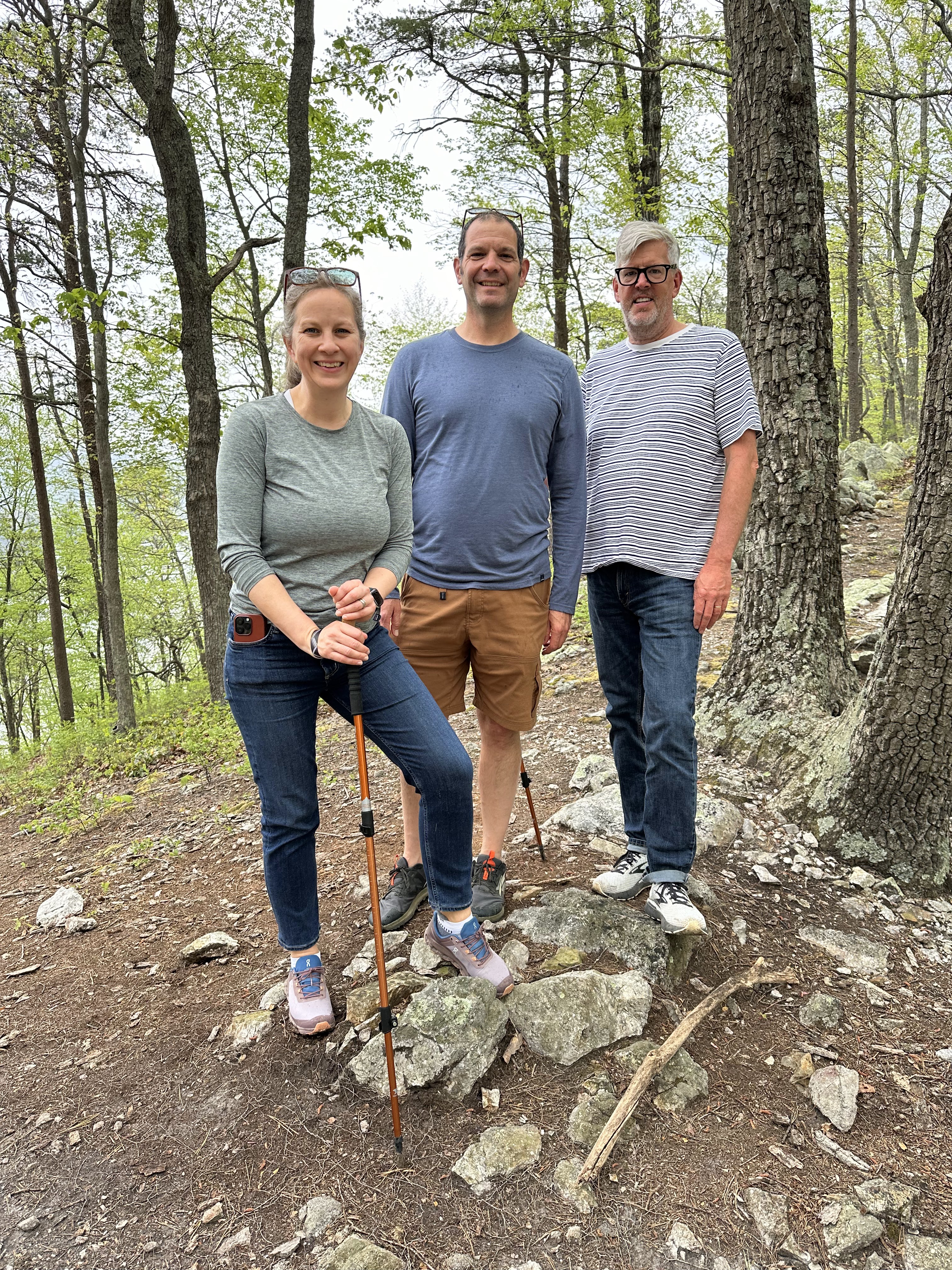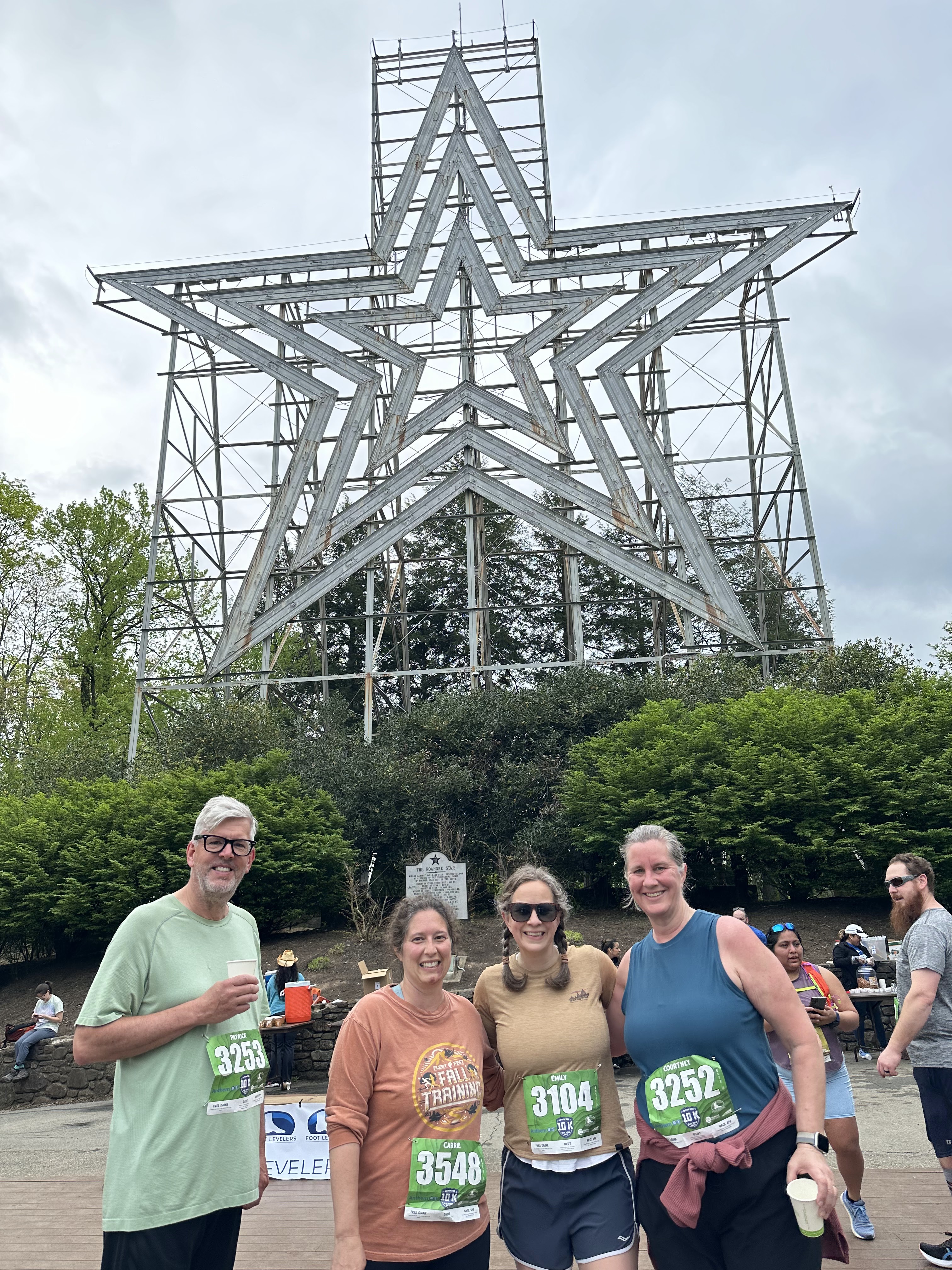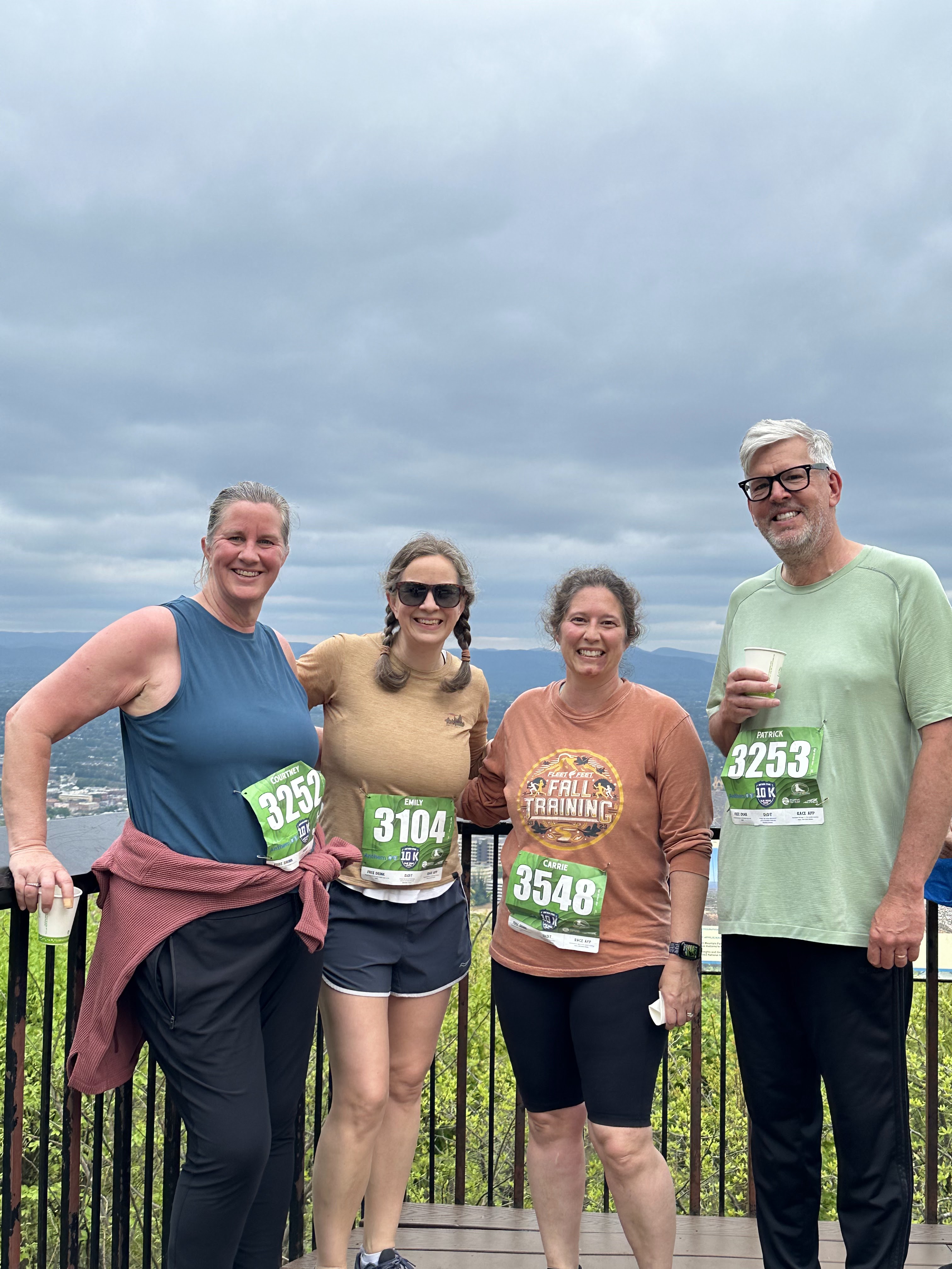 We had a leisurely morning breakfasting at Emily and Dan’s and then drove to Carvins Cove for a hike in the woods along the reservoir. It was a cloudy day and started raining a bit but it was a great hike. We stopped at Parkway Brewing Company on the way back for a quick beer, stopped at a coffee and wine shop and then back home and relaxed for the rest of the day. We headed back downtown to get our registration materials for tomorrow’s race and attend a concert that was part of the weekend activities. Emily packed an excellent picnic and it was fun to hang out and listen to some live music.